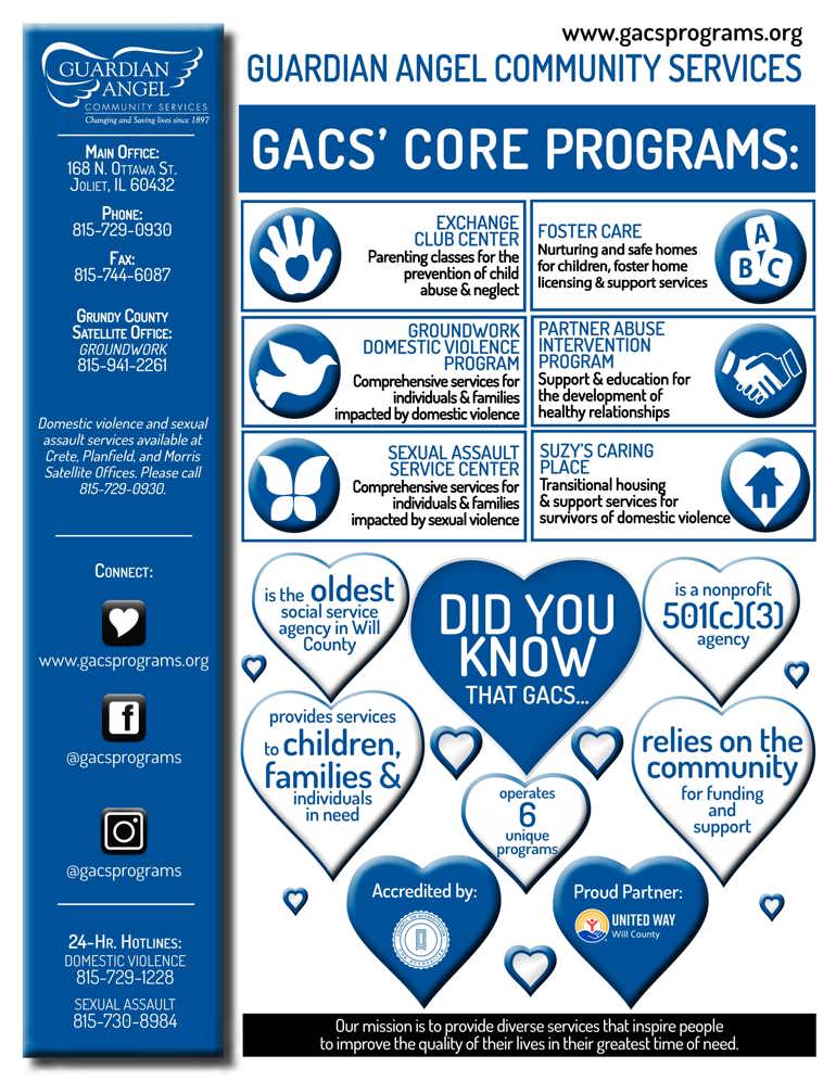 If you or someone you know are in need of services you can call one of the numbers below. For more details on Guardian Angel please see the flyers below or visit their website at www.gacsprograms.org