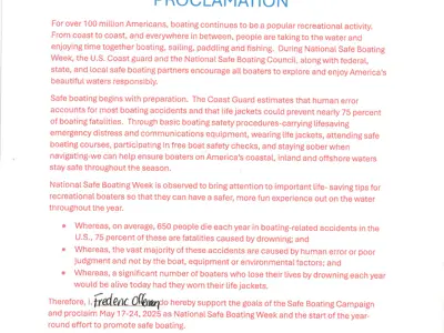 Have FUN and be SAFE; Village President Signs Proclamation Supporting Boater Safety