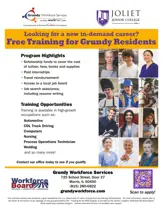 Free training opportunities in in-demand fields may be available to Grundy County residents. To learn more residents can visit: https://jjc.edu/community/workforce-development/grundy-workforce-services